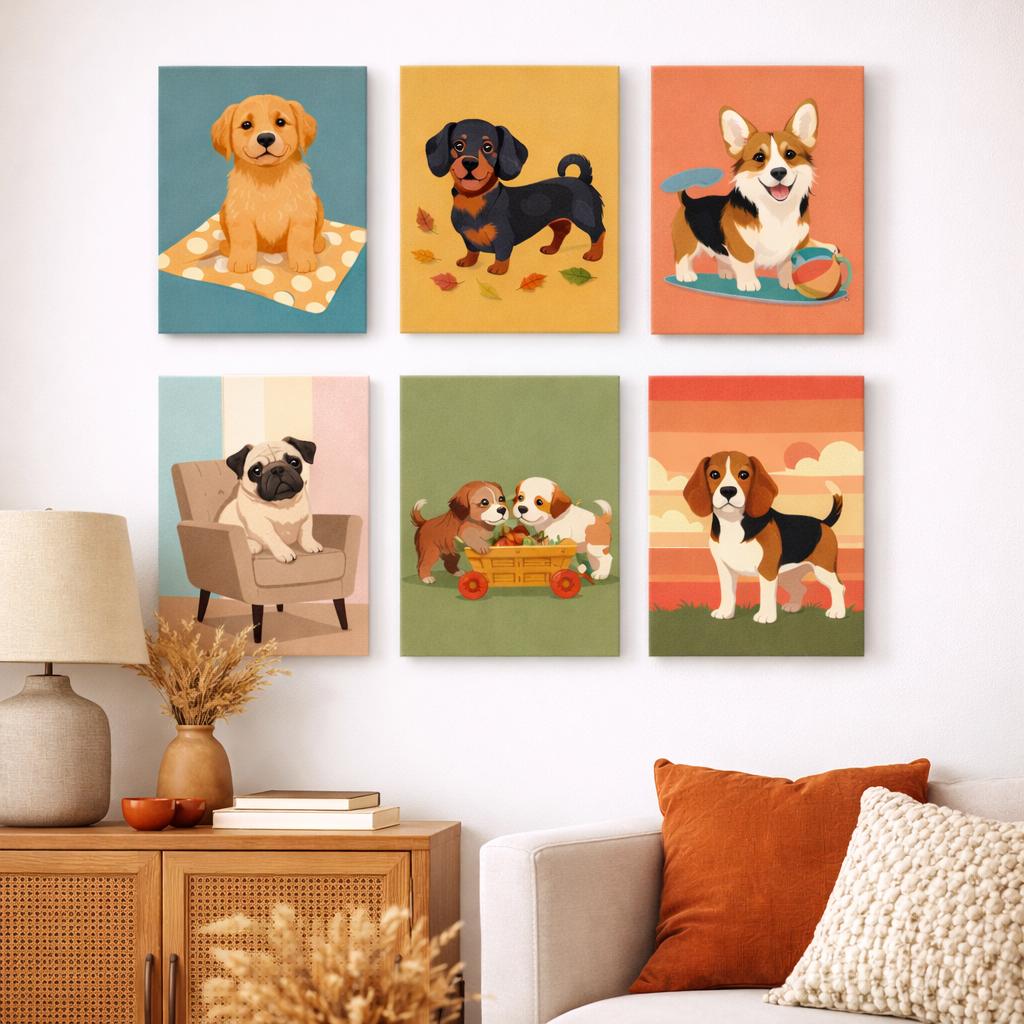 Le coffret contient 6 toiles assorties, parfaites pour créer une composition murale harmonieuse.