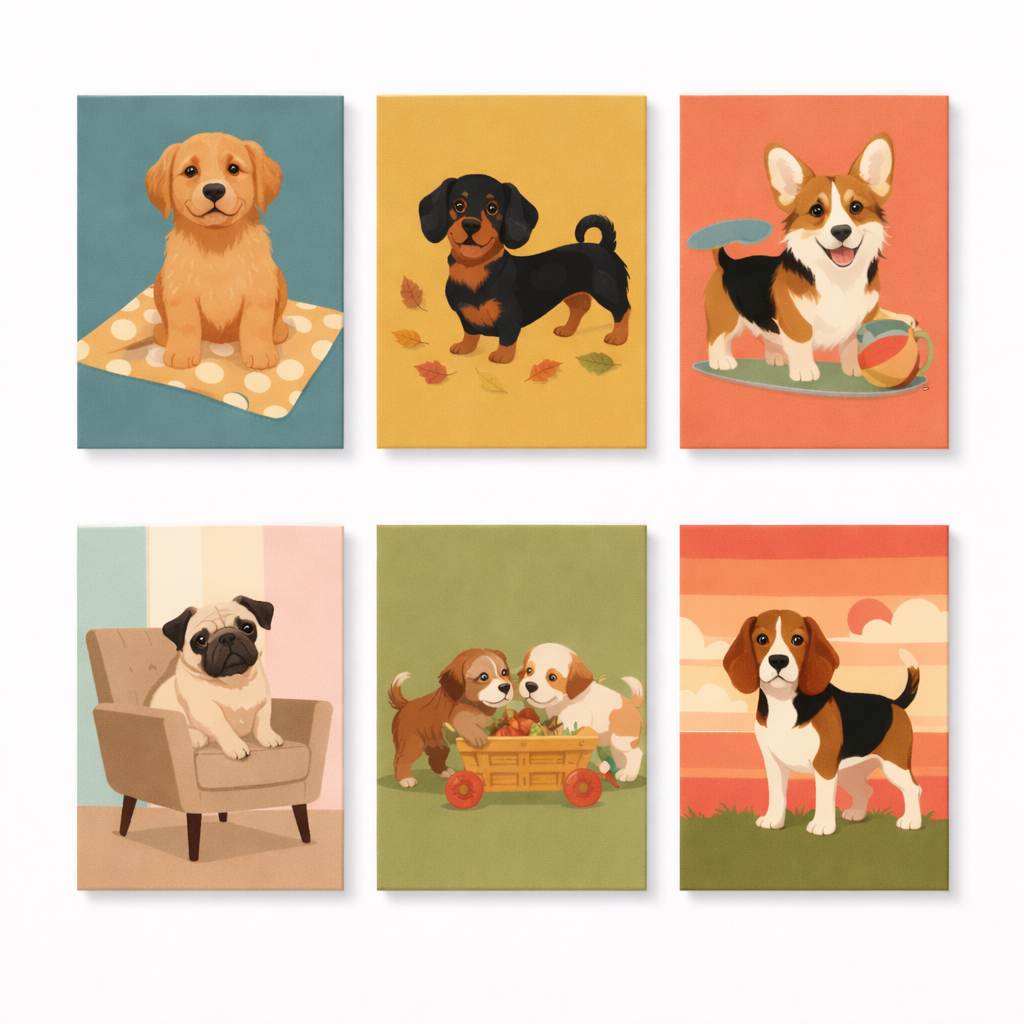 Coffret Douce Toiles – 6 Peintures par Numéros "La Vie en Pattes"